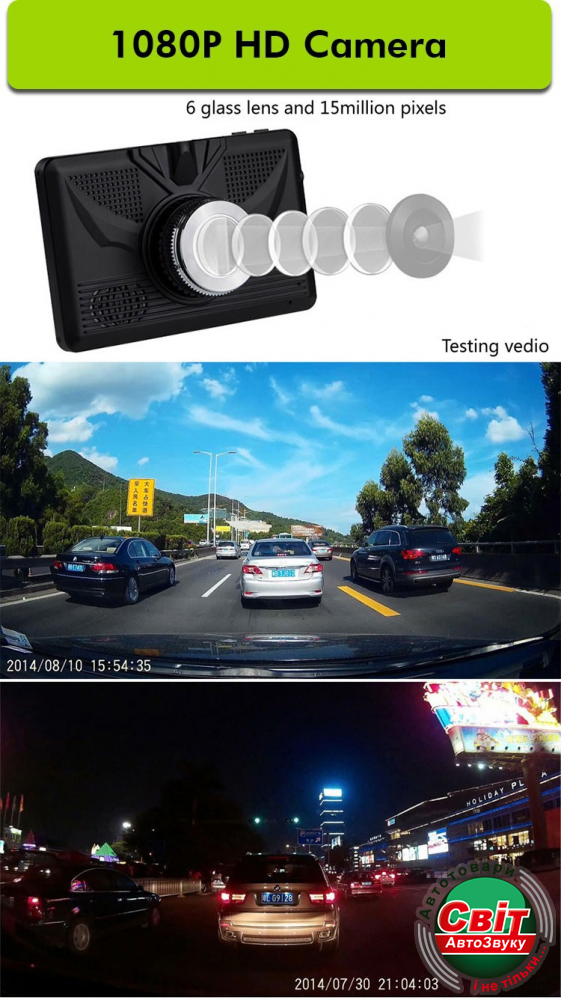 Основной видео регистратор (тыловой) выдает изумительную по качеству Full HD картинку (см. видео) в дневное и вечернее время суток, благодаря специальному 6-ти линзовому объективу с малым числом диафрагмы (для повышения светочувствительности при съемке в темное время суток). Наличие автоматически включающейся камеры заднего вида (с разметкой), не уступающей и даже превосходящей некоторые штатные автомобильные камеры по качеству — ставит GVR510 Cross FHD на ступеньку, где его достать конкурентам практически невозможно.