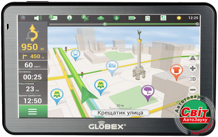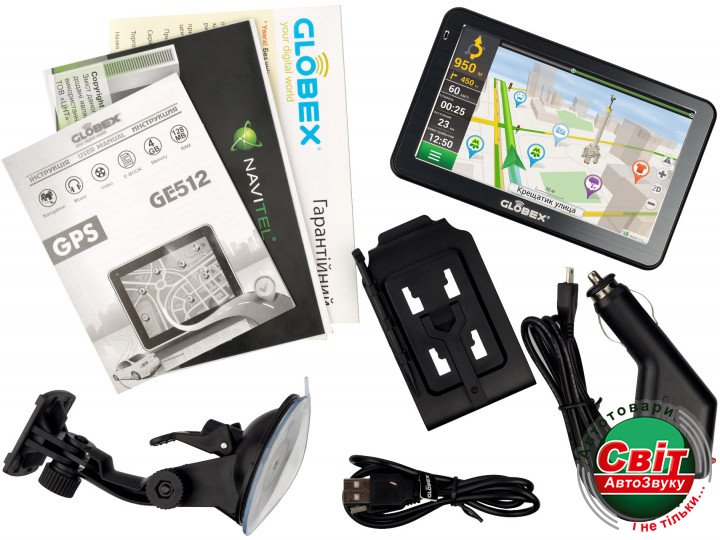GPS навігатор Globex GE512 (NavLux)Компактный GPS навігатор с дисплеем 5 дюймов, элегантным дизайном и отличным функционалом. Благодаря процессору Mstar MSB2531 с оперативной памятью в 128 МБ этот малыш с легкостью справится с несколькими задачами одновременно, а с этим здесь тоже все в порядке.