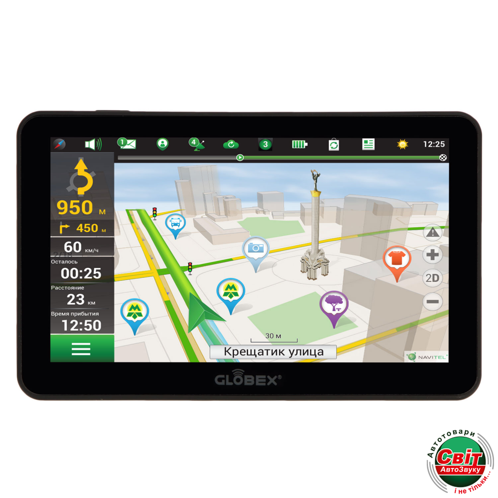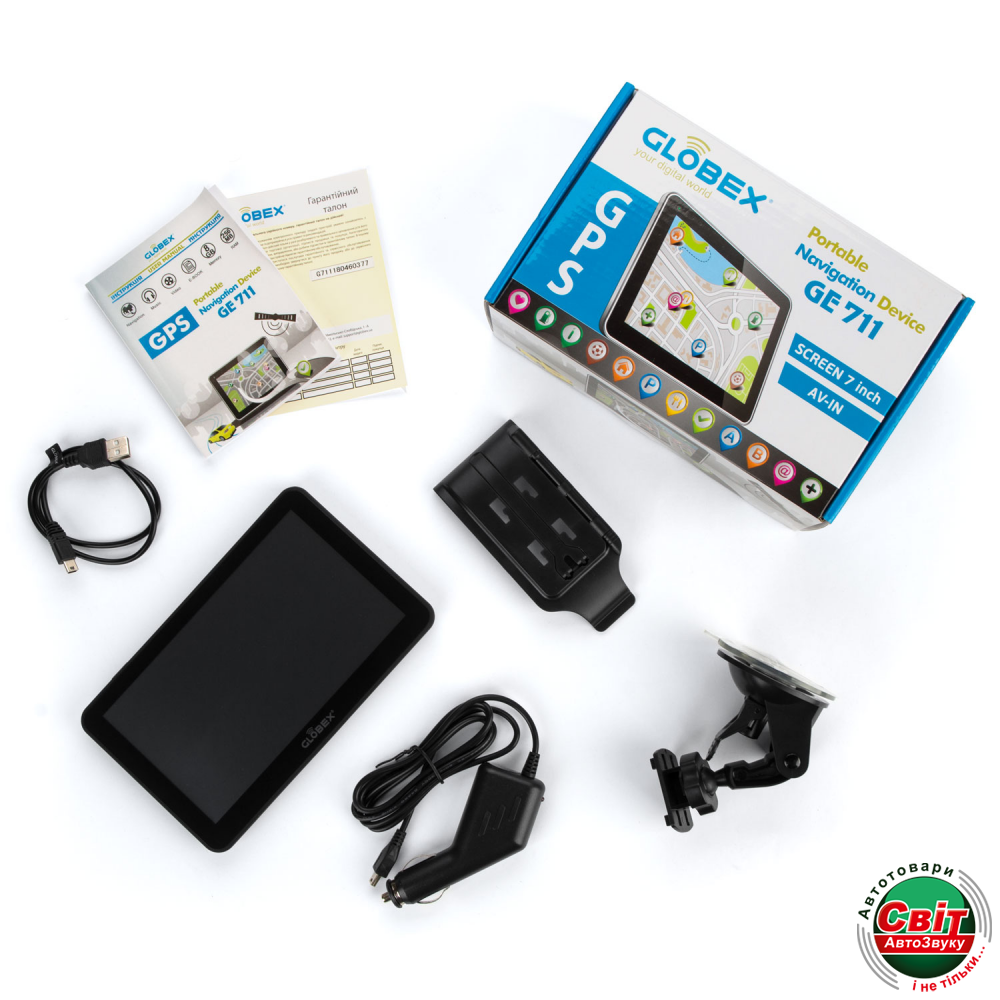 Следует отметить, что Globex GE711 это не просто навигатор, а полноценный мультимедийный центр с возможностью воспроизведения видео, аудио и графических файлов в различных форматах. Помимо этого в данной модели есть AV вход, что позволит подключить дополнительные устройства или камеру заднего вида.