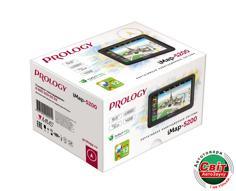 GPS навігатор Prology iMap-5200Простая и надежная портативная навигационная система с 5-дюймовым сенсорным экраном. Предустановленно лицензионное программное обеспечение «Навител», устройство полностью готово к работе и не требует дополнительной покупки карт.