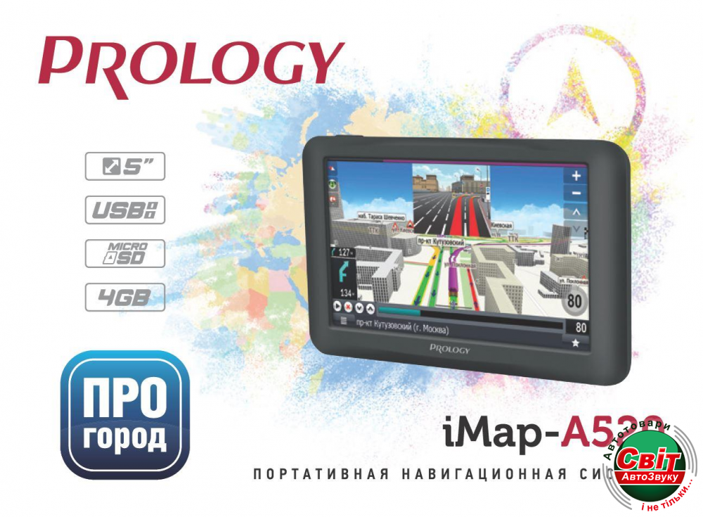 GPS навігатор Prology iMap-A520PROLOGY iMap-A520 предназначен для определения местоположения транспортного средства, выбора и сопровождения маршрута