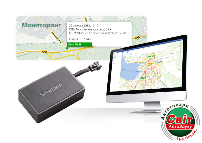 Мониторинг транспортного средства на бесплатном сервере starline.online по данным спутников ГЛОНАСС и GPS с точностью до 2,5 метров или по базовым GSM станциям с точностью до 100-250 метров в черте города