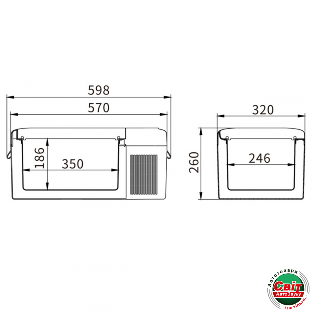 - Розміри: 570х320х260 мм