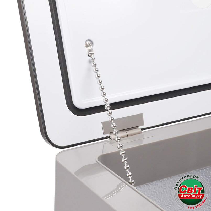З об'ємом 22 літри цей автохолодильник надає достатньо місця для зберігання продуктів різного розміру. Корпус виготовлений із високоякісного пластику, що забезпечує міцність та довговічність.