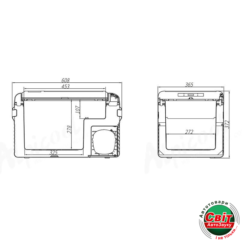 - Комплектація: Холодильник, кабель 12/24 від прикурювача, кабель 220 з блоком живлення