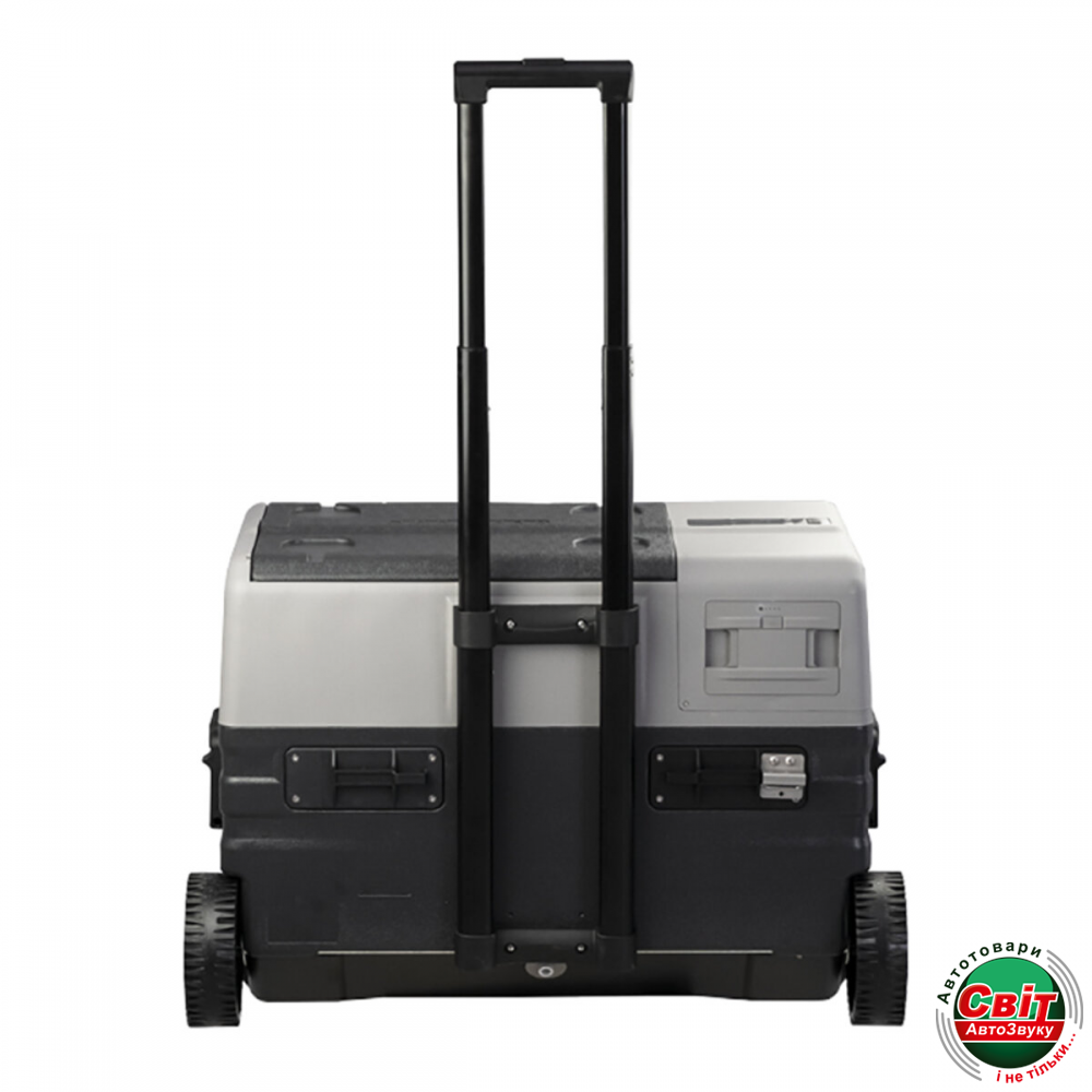 - Додаткові характеристики: Управління через додаток по Bluetooth, гніздо USB для зарядки гаджетів, Підсвічування холодильної камери, Триступінчастий захист акумулятора авто від розрядки, Захист від перепадів напруги, Захист компресора від перегріву, Знімні колеса, Відкривачка для пляшок, Телескопічна