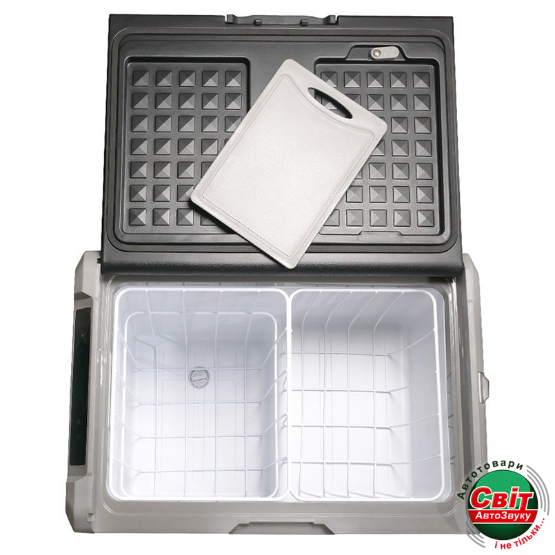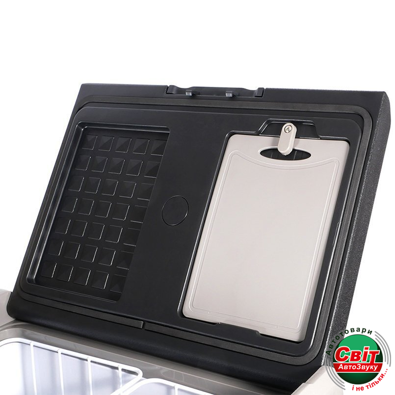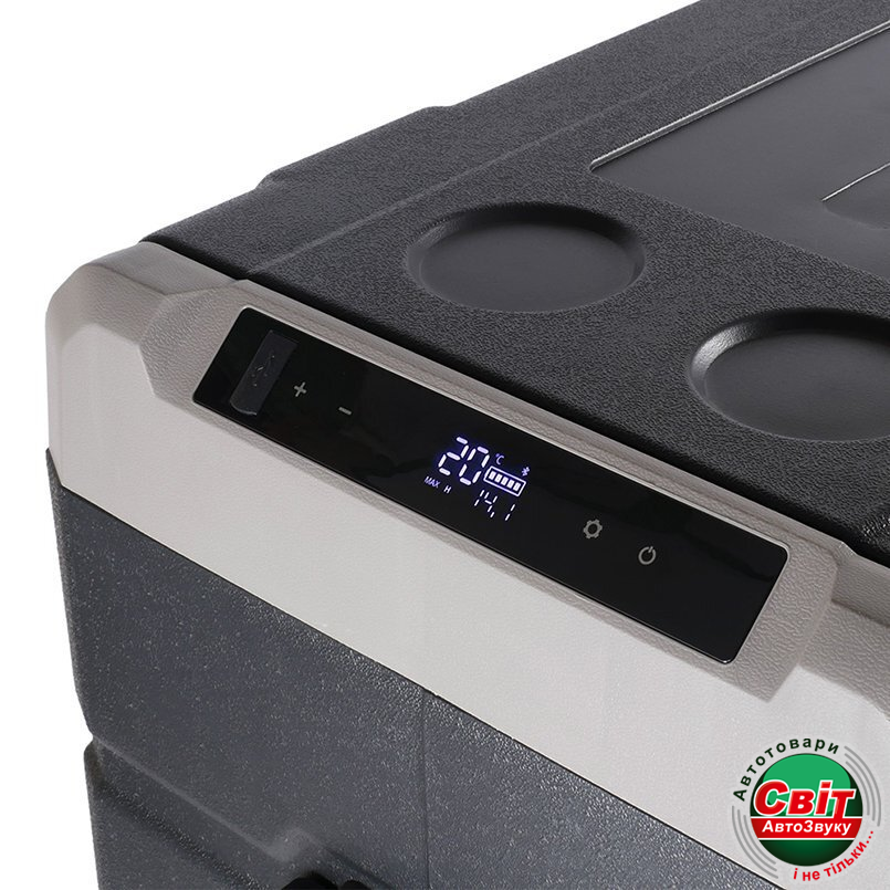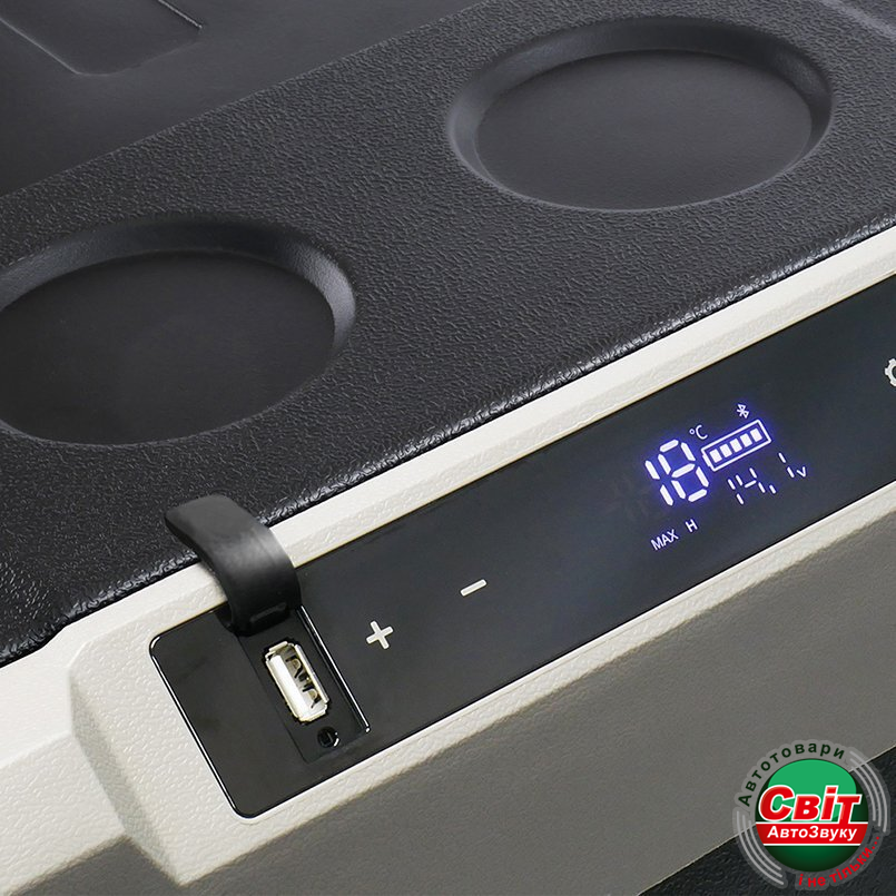 - Додаткові характеристики: Управління через додаток по Bluetooth, гніздо USB для зарядки гаджетів, Підсвічування холодильної камери, Триступінчастий захист акумулятора авто від розрядки, Захист від перепадів напруги, Кошики, Відкривачка для пляшок, Ручки для зручного транспортування