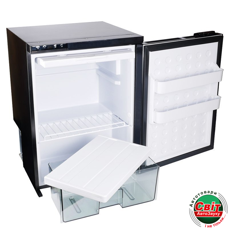 - Комплектація: Холодильник, навісна полиця на дверцятах – 2 шт, висувна скринька, контейнер для кубиків льоду, мережевий адаптер 220 Вт, кабель для підключення до джерела постійного струму 12/24 Вт, інструкція з експлуатації, гарантійний талон