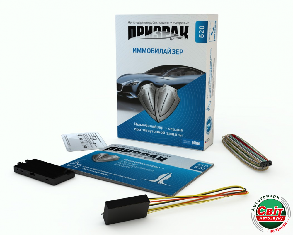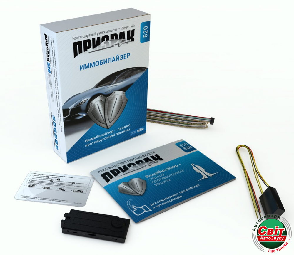 Іммобілайзер Prizrak-520Іммобілайзер (секретка) з додатковим рівнем захисту. Завдяки бездротовому реле pLine і набору протиугінних функцій машина захищена і віддана тільки своєму господареві. Обов'язкове введення секретного коду PIN штатними кнопками не дозволить автомобілю рушити з місця без аутентифікації власника. А кодове реле заблокує двигун, навіть якщо центральний блок сигналізації демонтований.