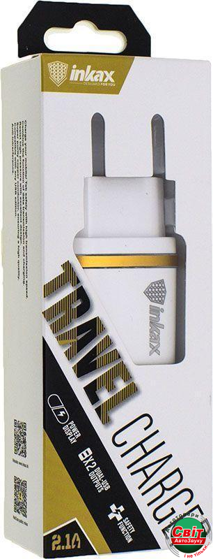 INKAX CD-11 Travel charger + Type-C cable 2USB 2.1A White