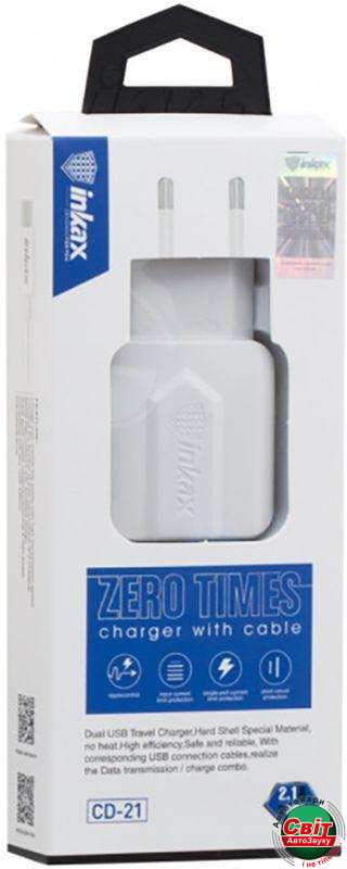 INKAX CD-21 Travel charger + Micro cable 2USB 2.1A White