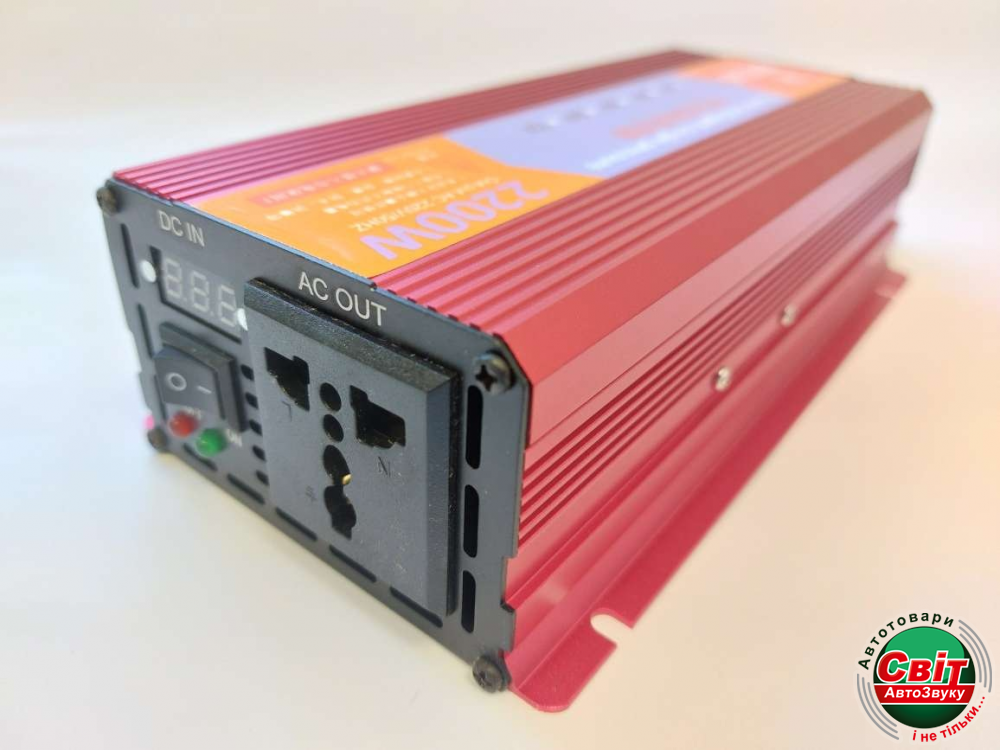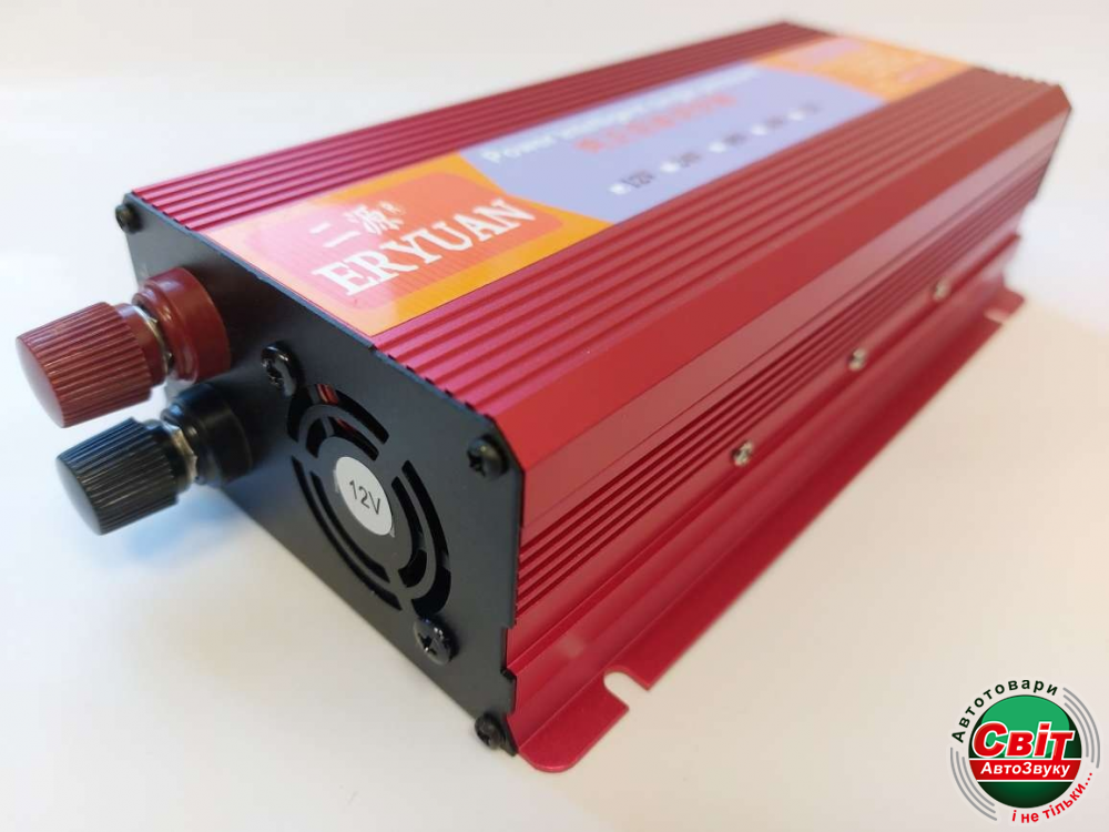 Інвертор Eryuan 12-220В 2200W (чистий синус)Інвертор використовується для перетворення напруги 12В на 220В. Дозволяє підключати навантаження 1100Вт, максимальне пікове навантаження складає 2200 Вт.