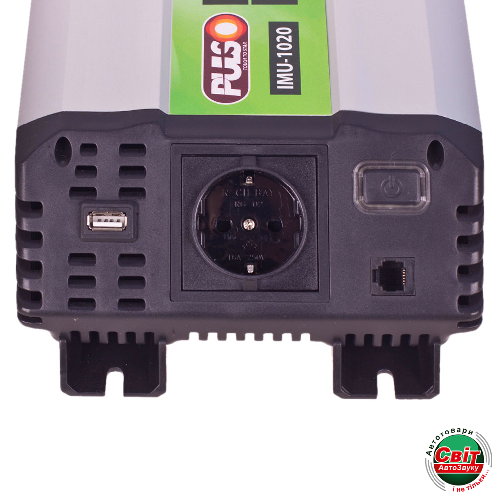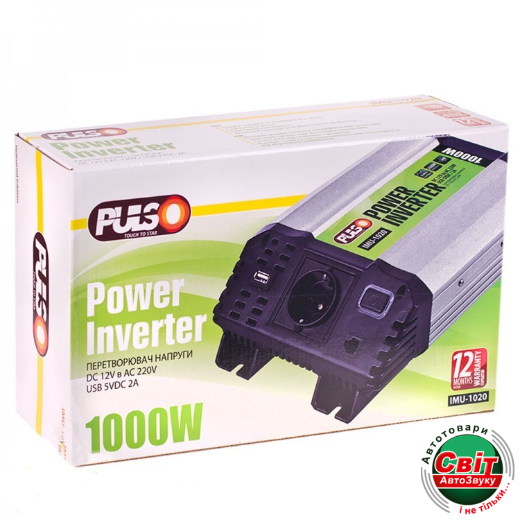 Інвертор PULSO IMU-1020 (12/220V/1000W/USB-5VDC2.0A)Інвертор перетворює 12 В бортового напруги автомобіля в 220 В змінного з частотою 50Hz на виході. Авто інвертор дозволяє використовувати в вашому автомобілі звичайні побутові прилади, які ви зазвичай використовуєте вдома і на роботі.