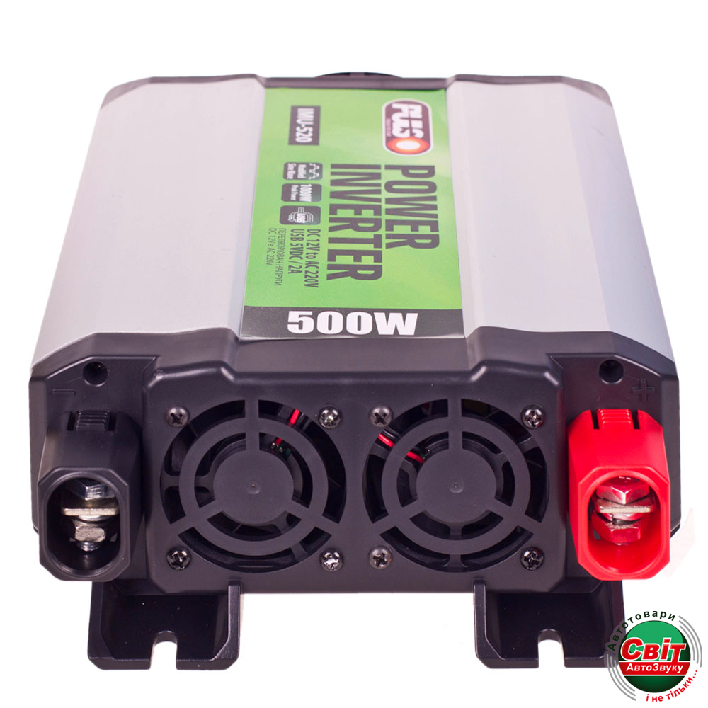 Інвертор PULSO IMU-520 (12/220V/500W/USB-5VDC2.0A)Інвертор перетворює 12 В бортового напруги автомобіля в 220 В змінного з частотою 50Hz на виході. Авто інвертор дозволяє використовувати в вашому автомобілі звичайні побутові прилади, які ви зазвичай використовуєте вдома і на роботі.