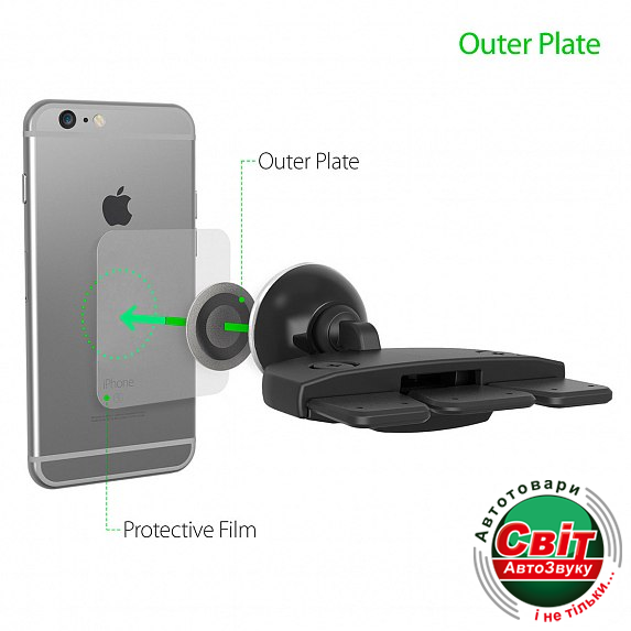 Тримач iOttie iTap Magnetic CD Slot Mount (HLCRIO152)Качественный и надежный автомобильный держатель с мощным магнитом, который позволяет вам закрепить свой смартфон в любом удобном месте без каких-либо рисков. Если вы хотите, чтобы ваши руки всегда были свободными во время вождения, так что концентрация на дороге максимальная, и вам не нужно постоянно отвлекаться на поиски телефона, тогда этот держатель станет для вас лучшим помощником. Вы также можете свободно использовать разъемы и кнопки мобильного устройства. Если вы проводите большую часть своей жизни в машине, вам просто нужно приобрести такую маленькую, необходимую и долговечную вещь. Это универсальное устройство, которое позволяет исправить гаджет на требуемом уровне. Благодаря кронштейну вам не нужно долго рыться в сумке и искать телефон.