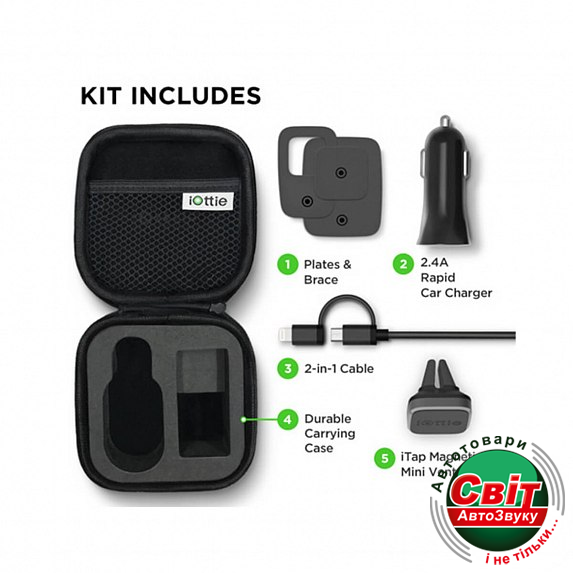 Тримач iOttie iTap Magnetic Mounting and Charging Travel Kit (HLTRIO110)iOttie iTap Magnetic Mounting & Charging Travel Kit - прекрасный набор, который включает в себя все необходимое для Вашей поездки. Просто разместите крепление на вентиляционном отверстии и поместите металлическую пластину на телефон или корпус. После установки металлической пластины и крепления легко установите Ваш телефон. Используйте прилагаемое автомобильное зарядное устройство и кабель 2-в-1 для зарядки Вашего устройства Android или iPhone.