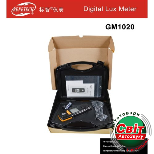 - ›Вимірювач рівня освітленості (люксметр) + термометр Benetech GM1020
