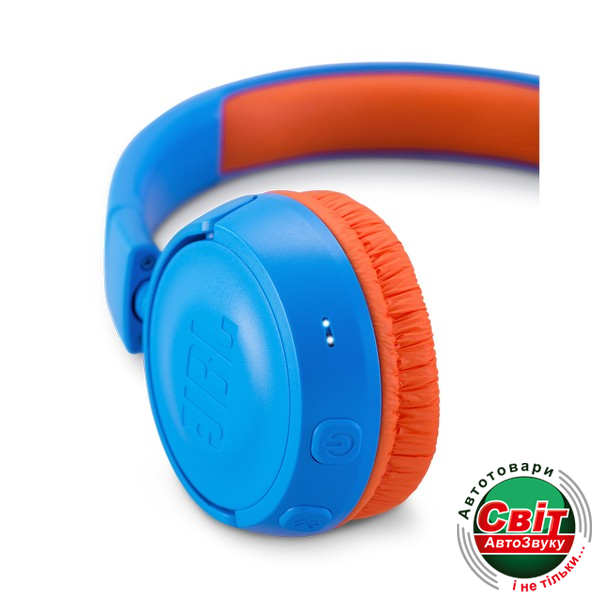 Навушники JBL JR300BT Rocker Blue (JBLJR300BTUNO)Безопасные и легкие беспроводные наушники JBL JR300BT позволяют 12 часов наслаждаться легендарным звучанием JBL и подходят даже для самых маленьких музыкальных фанатов. Эти наушники следят за тем, чтобы громкость не превышала 85 дБ для защиты слуха, а удобные средства управления можно использовать без посторонней помощи. Благодаря специальным амбушюрам и обручу с мягкой подкладкой дети смогут с комфортом наслаждаться любимой музыкой. Детям также понравится возможность украсить их наушники приложенными наклейками.