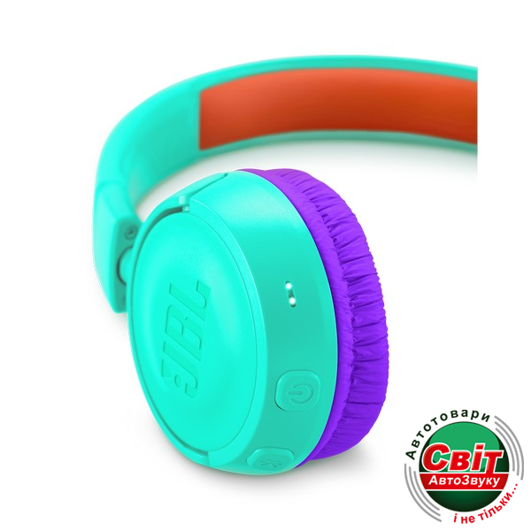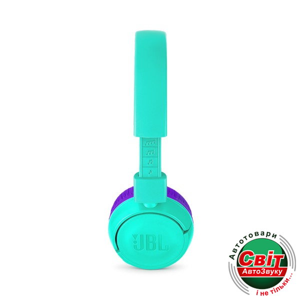 Навушники JBL JR300BT Teal (JBLJR300BTTEL)Безопасные и легкие беспроводные наушники JBL JR300BT позволяют 12 часов наслаждаться легендарным звучанием JBL и подходят даже для самых маленьких музыкальных фанатов. Эти наушники следят за тем, чтобы громкость не превышала 85 дБ для защиты слуха, а удобные средства управления можно использовать без посторонней помощи. Благодаря специальным амбушюрам и обручу с мягкой подкладкой дети смогут с комфортом наслаждаться любимой музыкой. Детям также понравится возможность украсить их наушники приложенными наклейками.