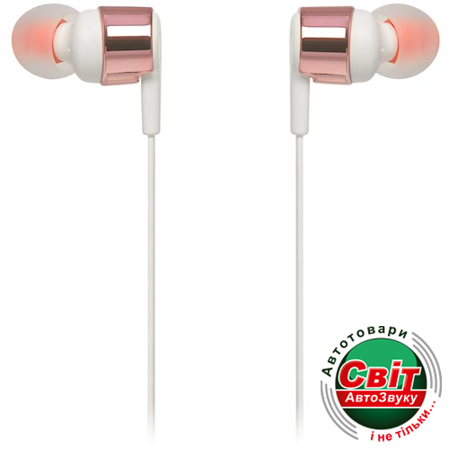 Наушники JBL T210 Rose Gold (JBLT210RGD)Легкі, зручні і компактні. Усередині корпусу вушних вкладишів з металевою обробкою знаходиться пара 8,7-мм динаміків, здатних видавати досить потужні баси і відтворювати потужний звук JBL Pure Bass, який можна почути в концертних залах, на спортивних аренах та в звукозаписних студіях по всьому світу. Крім того, однокнопковий пульт дозволяє управляти відтворенням музики, а також відповідати на дзвінки за допомогою вбудованого мікрофона. Все це робить модель T210 зручним партнером для повсякденного використання на роботі, вдома і в дорозі.