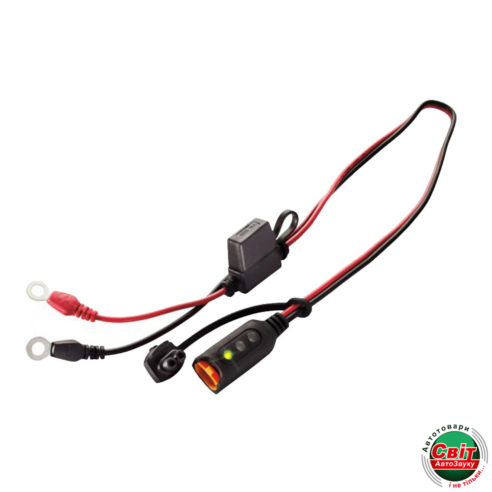 Кабель-подовжувач CTEK Comfort Indicator Eyelet M6Дуже зручний для установки на АКБ, розташованих у важкодоступних місцях, де складно здійснювати контроль стану батарей, наприклад, деяких автомобілів, мотоциклах, газонокосарках і водних мотоциклах. Індикатор стану АКБ має вбудований запобіжник 15-А, кабель 50 см з круглими клемами М6.