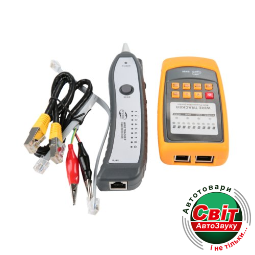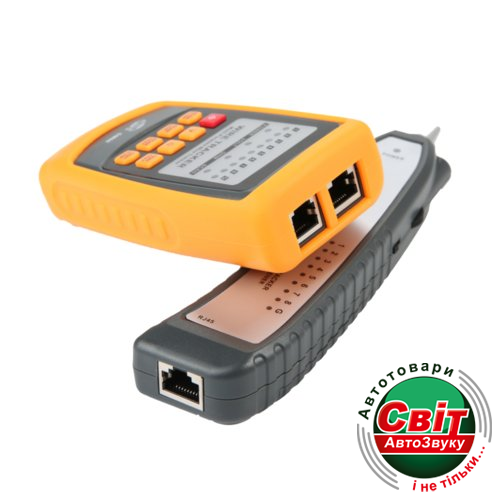 Кабельний тестер Benetech GM60GM-60 Багатофункціональний кабельний тестер виробництва компанії Benetech призначений для тестування кабелів з роз'ємами RJ-45 і RJ-11, а також окремих провідників і провідникових пар. Даний кабельний тестер складається з двох інструментів тестування: передавача і тестера працюють у тандемі. GM60 здатний перевіряти кабелі на провідність, наявність короткого замикання провідників і відкритою ланцюга, а також визначати цілосності кабельної структури. Кабельний тестер Benetech GM60 має ручне налаштування рівня гучності індикації, здатний тестувати кабель довжиною більше одного кілометра. Особливістю даної моделі є вибір декількох режимів роботи: тестування, сканування з вибором необхідної швидкості операції. Харчування приймача кабельного тестера забезпечує батарейка 9 В, поширеного типорозміру 6F22 "крона", а передавач живиться від 3-х батарей 1,5 Ст.