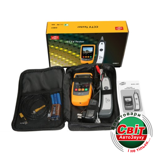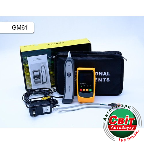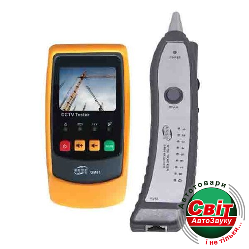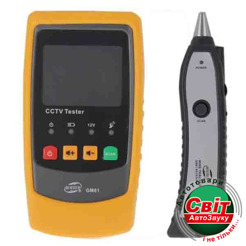 Кабельний тестер Benetech GM61GM61 Универсальный кабельный тестер производства компании Benetech, предназначен для поиска и тестирования видеосигнала, автоматического распознавания видео сигналов стандартов PAL и NTSN. Данный многофункциональный кабельный тестер состоит из двух инструментов: передатчика и приёмника работающих одновременно. GM61 оснащён ЖКИ дисплеем с диагональю 2" для отображения захваченных видеосигналов, также сфера применения данного тестера позволяет проверять кабели на проводимость, наличие короткого замыкания проводников и открытой цепи, а также определять целосность кабельной структуры. Кабельний тестер Benetech GM61 имеет ручную настройку уровня громкости индикации, способен тестировать кабель длинной более одного киллометра. Особенностью данной модели является функции автоматического выключения питания при длительном бездействии прибора и питание от литиевого аккумулятора.