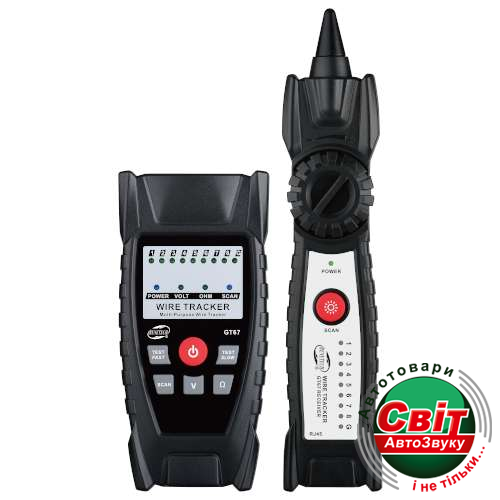 Багатофункціональний кабельний тестер виробництва компанії Benetech призначений для тестування кабелів з роз'ємами RJ-45 і RJ-11, а також окремих провідників і провідникових пар. Даний кабельний тестер складається з двох інструментів тестування: передавача і тестера працюють у тандемі. GT67 здатний перевіряти кабелі на провідність, наявність короткого замикання провідників і відкритою ланцюга, а також визначати цілосності кабельної структури. Кабельний тестер Benetech GM67 має ручне налаштування рівня гучності індикації, здатний тестувати кабель довжиною більше одного кілометра. Особливістю даної моделі є вибір декількох режимів роботи: тестування, сканування з вибором необхідної швидкості операції. Харчування приймача кабельного тестера забезпечує батарейка 9 В, поширеного типорозміру 6F22 "крона", а передавач живиться від 3-х батарей 1,5 Ст.