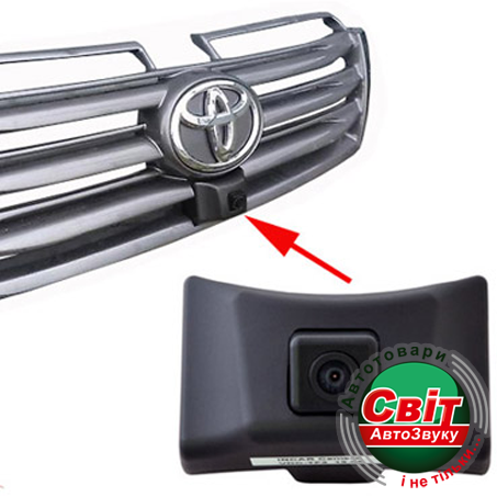 Штатна фронтальна камера для Toyota Land Cruiser Prado 150. Камера монтується під логотипом виробника в решітку радіатора.
