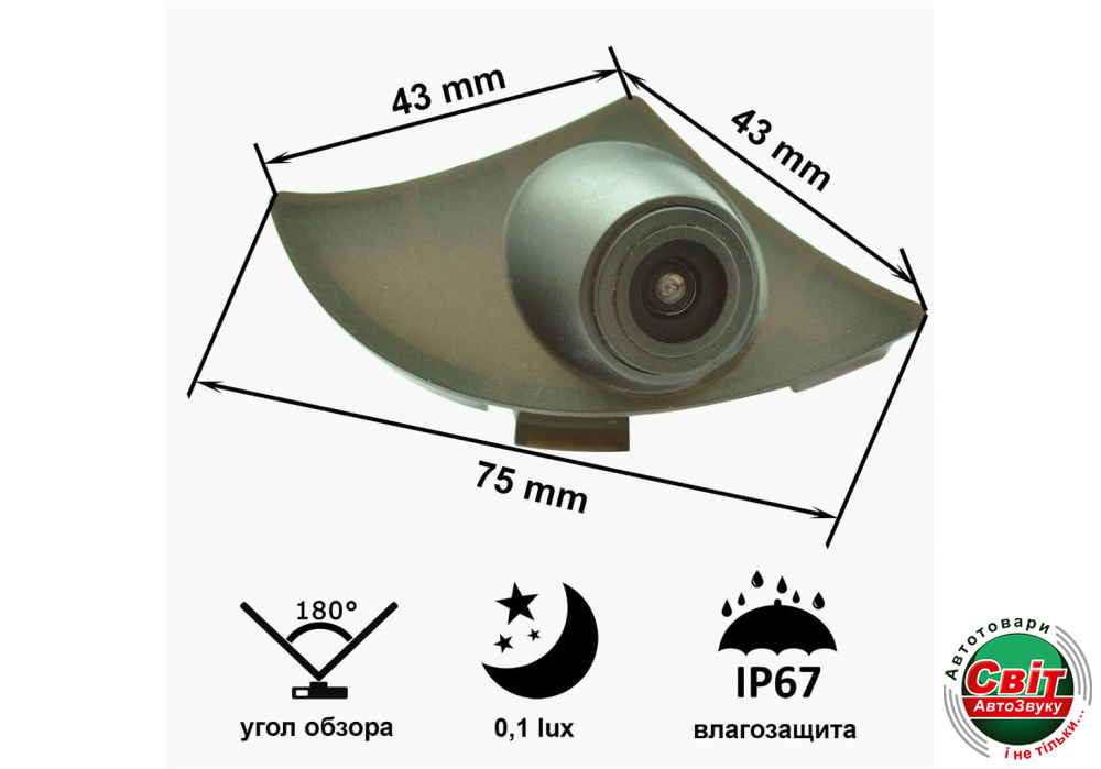 Штатна камера переднього вигляду Прайм Ікс B8004W для Toyota Camry 2012 обладнана кольоровим сенсором Sony CCD із широким кутом огляду. Найчастіше, цю камеру використовують для безпечного паркування.