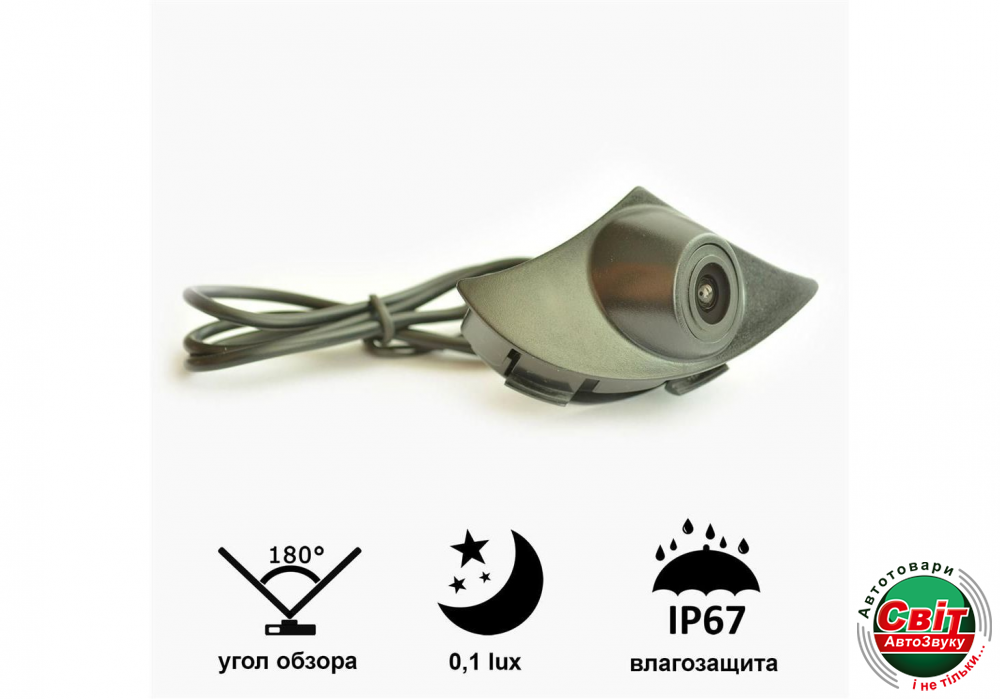 Ширококутна камера переднього виду Prime-X B8005W підходить для установки в штатне місце (емблему автомобіля або решітку радіатора) автомобіля Toyota RAV4 з 2013 р.в. Сенсор камери має максимальний кут огляду 180 градусів.