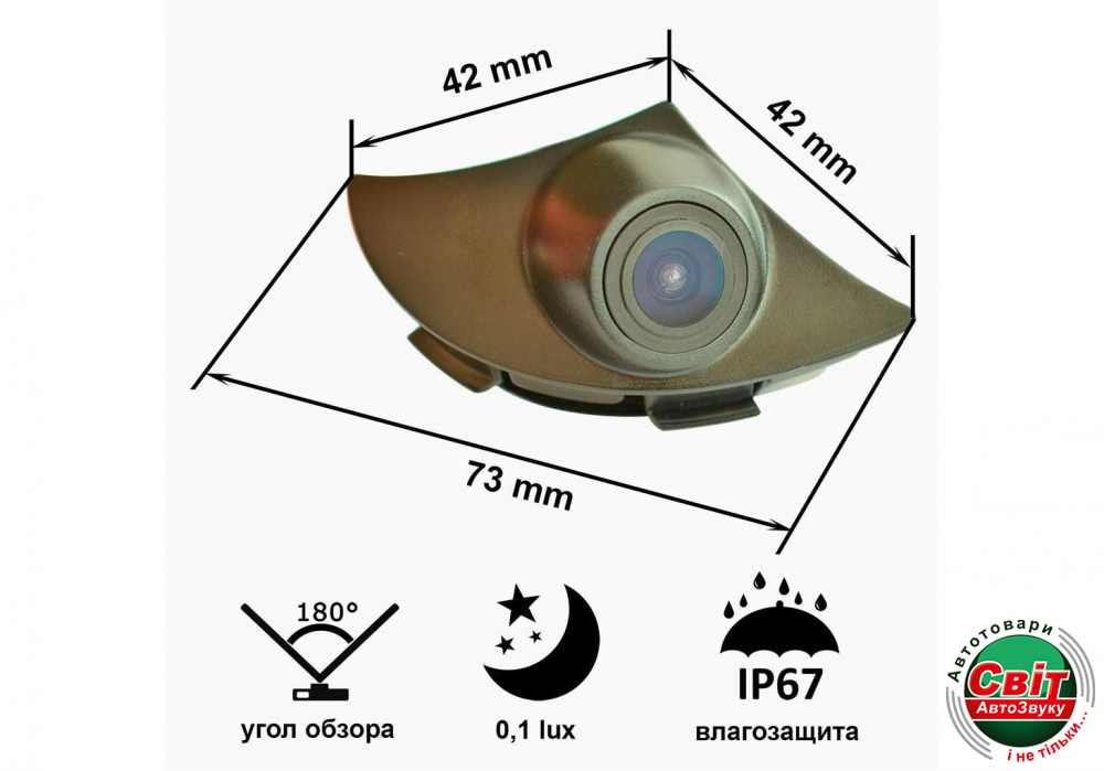 Зображення з камери можна вивести на будь-який доступний пристрій відображення (штатна магнітола, дзеркало з монітором, монітор тощо). Це найкраще рішення для полегшення паркування в обмеженому просторі або за недостатньої освітленості. Через об'єктив камери можна чітко побачити всі приховані перешкоди перед автомобілем, які часто складно розглянути з водійського сидіння. Якісна матриця камери CCD від іменитої компанії SONY має високу світлочутливість і дає змогу знімати за дуже низької освітленості від 0,1 Люкс (наприклад, 0,3 Люкс - це місячна ніч). Скляний об'єктив, порівняно з пластмасовим, не дряпається і довго забезпечить якість картинки. Високий рівень захисту від пилу і вологи за стандартом IP67 забезпечує стовідсоткову водонепроникність і довговічність камери переднього виду від Prime-X.