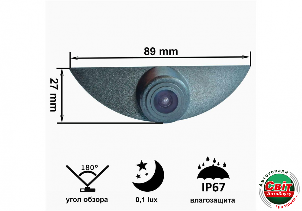 - Кут огляду - 180 градусів;