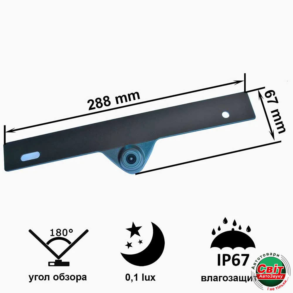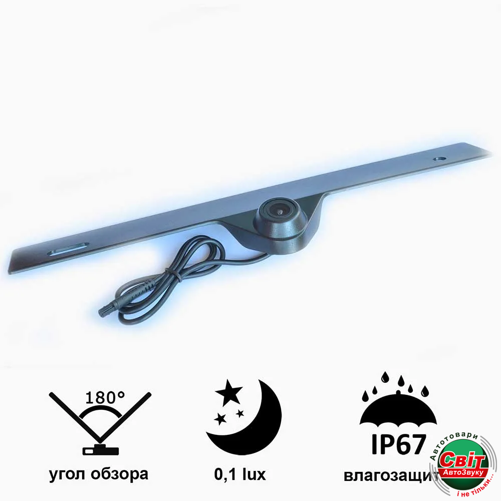Ширококутова універсальна камера переднього виду Prime-X C8173W підходить для установки в передню рамку номерного знака в будь-який автомобіль. Сенсор камери має максимальний кут огляду 180 градусів.