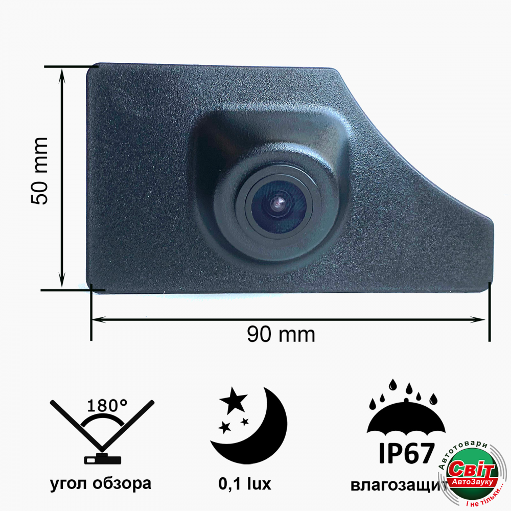 Камера переднього вигляду Prime-X C8250W (Volkswagen T-ROC 2019)Ширококутні штатні камери переднього вигляду Prime-X призначені для встановлення на автомобіль без жодних змін, у штатні місця (зазвичай, в решітку радіатора або в ембому автомобіля).