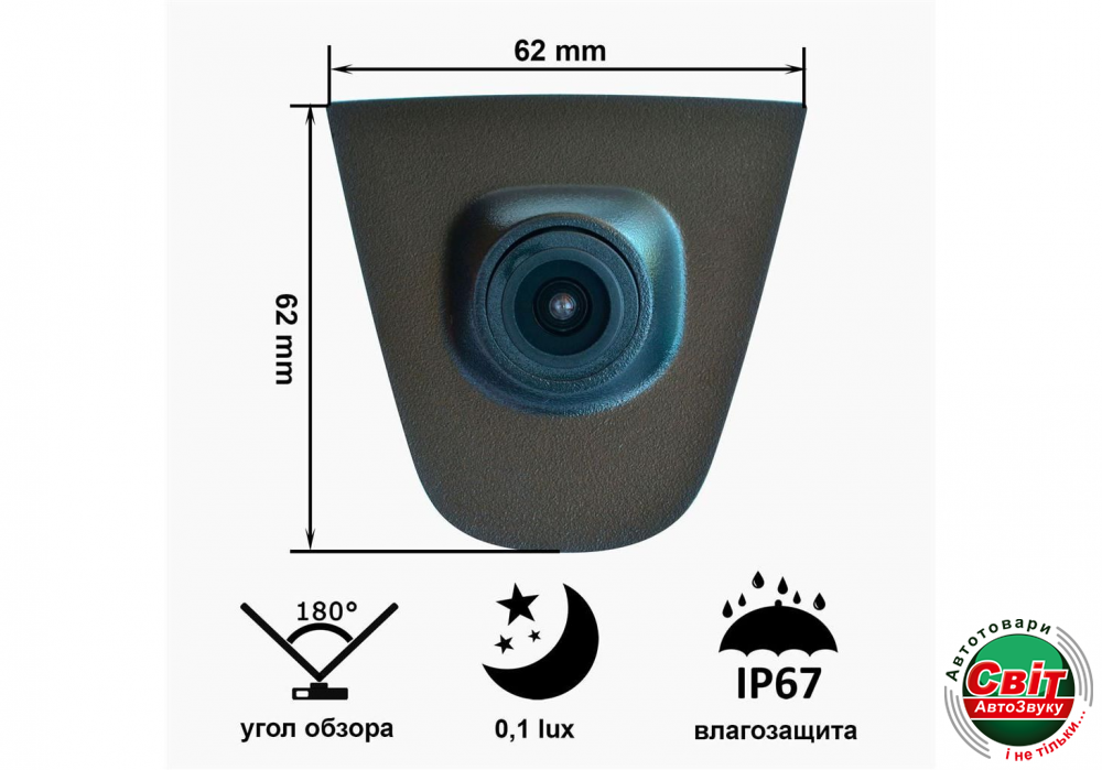Штатна камера переднього вигляду Прайм Ікс С8067W для Honda Accord 2.0 2014-2015 обладнана кольоровим сенсором Sony CCD із широким кутом огляду. Найчастіше, цю камеру використовують для безпечного паркування.