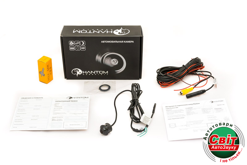 PHANTOM CAM-111UN - універсальная видеокамера заднего или фронтального обзора с возможностью отключения линий парковки. Тип установки - врезная. Сенсор CMOS (CMD), минимальная освещенность 0,3 lux. Стандарт исполнения IP67.Характеристики: