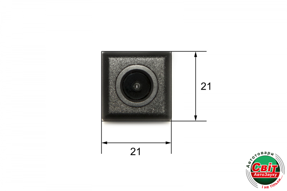 Камера заднього виду, кольорова накладна. Матеріал лінзи - скло. Призначена для універсальної установки. Тип матриці HCCD.