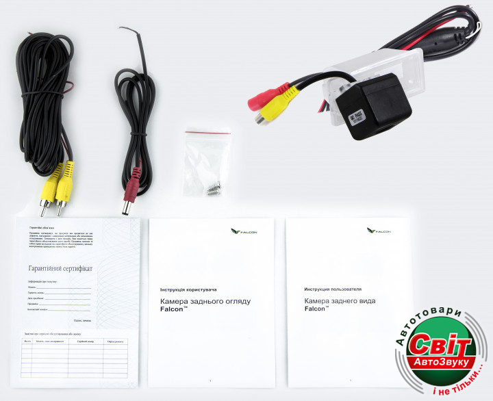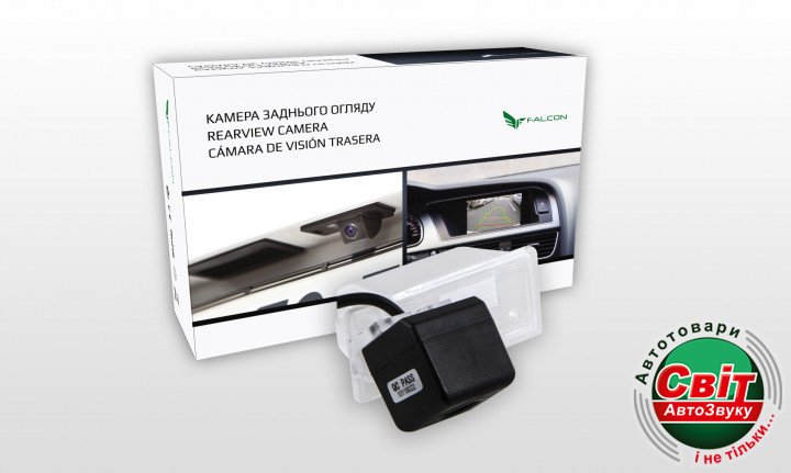 Камера заднього виду Falcon SC107SCCDКамери заднього виду Falcon забезпечують відмінний огляд простору за автомобілем і роблять процес паркування максимально зручним. Поліпшена чутливість матриці, що дозволяє передавати якісне зображення, тип матриці-SCCD. Камера працює в системі NTSC. Наявність паркувальної розмітки дозволяє набагато впевненіше оцінювати довжину відстані до об'єктів позаду автомобіля.