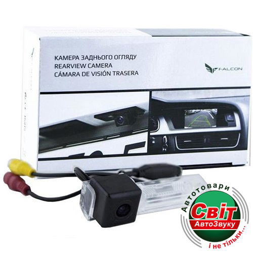 За передачу изображения отвечает сверхчувствительный SCCD сенсор, оснащенный 640x596 эффективным разрешением. Общее же разрешение составляет 480 ТВ-линий (NTSC). Уровень освещенности ночью обычно стоит на уровне 0.3 люкс. Сенсор в камере Falcon воспринимает и передает картинку с освещенностью от 0.1 люкс, так что светлое изображение обеспечено везде, где есть хотя-бы минимальный источник света. На передаваемое изображение нанесена разноцветная парковочная разметка с перспективой, для комфортного сопоставления габаритов и расстояния до объекта. Широкий угол обзора 170° поможет видеть больше. В суме характеристики камеры составляют продвинутый комплект для парковки в темное время суток, с плоховидимыми препятствиями. Отображение дневной картинки также приятно отличается сочностью и четкостью.