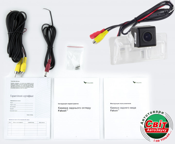 Камери заднього виду Falcon забезпечують відмінний огляд простору за автомобілем і роблять процес паркування максимально зручним. Поліпшена чутливість матриці, що дозволяє передавати якісне зображення, тип матриці-SCCD. Камера працює в системі NTSC. Наявність паркувальної розмітки дозволяє набагато впевненіше оцінювати довжину відстані до об'єктів позаду автомобіля.