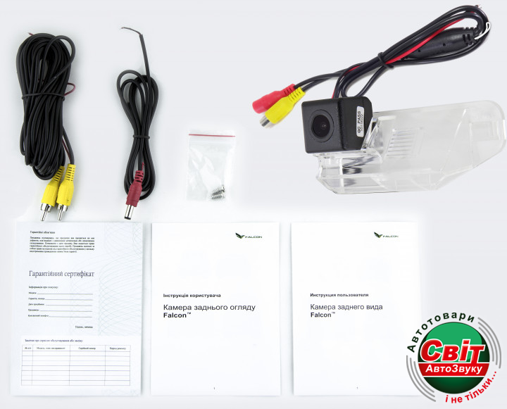 Камери заднього огляду Falcon забезпечують чудовий огляд простору за автомобілем і роблять процес паркування максимально зручним. Покращена чутливість матриці дає змогу передавати якісне зображення, тип матриці-SCCD. Камера працює в системі NTSC. Наявність паркувальної розмітки дає змогу набагато впевненіше оцінювати довжину відстані до об'єктів позаду автомобіля.