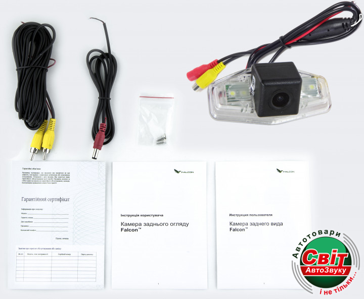 Камера заднього виду Falcon SC91SCCDКамери заднього виду Falcon забезпечують відмінний огляд простору за автомобілем і роблять процес паркування максимально зручним. Поліпшена чутливість матриці, що дозволяє передавати якісне зображення, тип матриці-SCCD. Камера працює в системі NTSC. Наявність паркувальної розмітки дозволяє набагато впевненіше оцінювати довжину відстані до об'єктів позаду автомобіля.