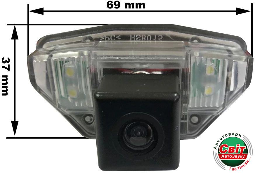 Камера заднього виду IL Trade 9516 призначена для встановлення на автомобілі Honda CR-V III 2007-2012, Jazz 2008+ у штатне місце без будь-яких доробок (у місце ліхтаря підсвічування номерного знака).