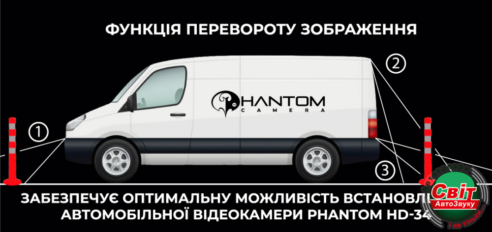 Спеціально розроблена автомобільна відеокамера PHANTOM HD-34 підтримує два типи відеосигналу на вибір — AHD або CVBS.