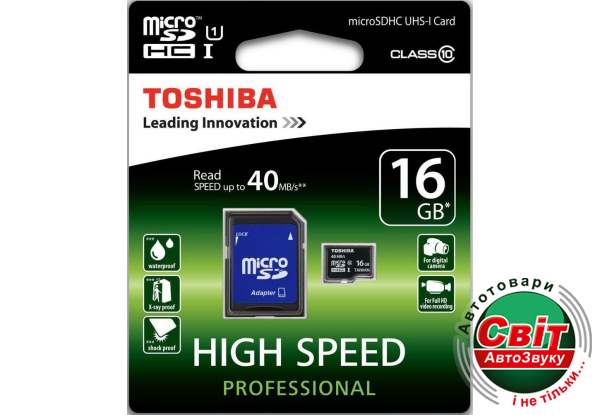- ›Карта пам'яті microSDHC 16Gb Toshiba Class 10 UHS-I (+ adapter SD)