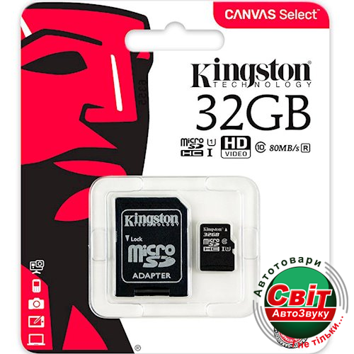 - ›Карта пам'яті microSDHC 32Gb Kingston Class 10 U1 Canvas Select (R80/W10) (+ adapter SD) (SDCS/32GB)