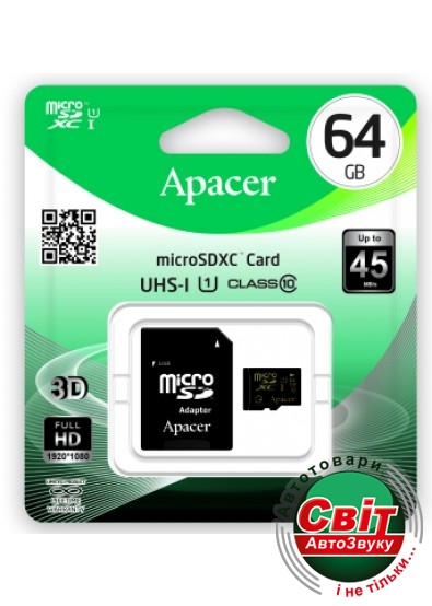 - ›Карта пам'яті microSDXC 64Gb Apacer UHS-I U1 (+ adapter SD) (AP64GMCSX10U1-R)