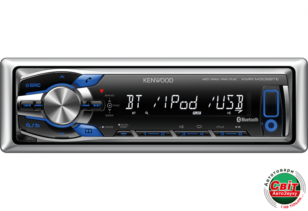 Магнітола морская Kenwood KMR-M308BTEЦифровой медиаресивер серии "MARINE" с встроенным блоком беспроводной громкой связи Bluetooth