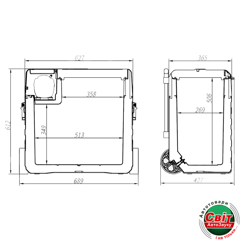 - Габарити зовнішні ШхВхГ: 689x612x427 мм